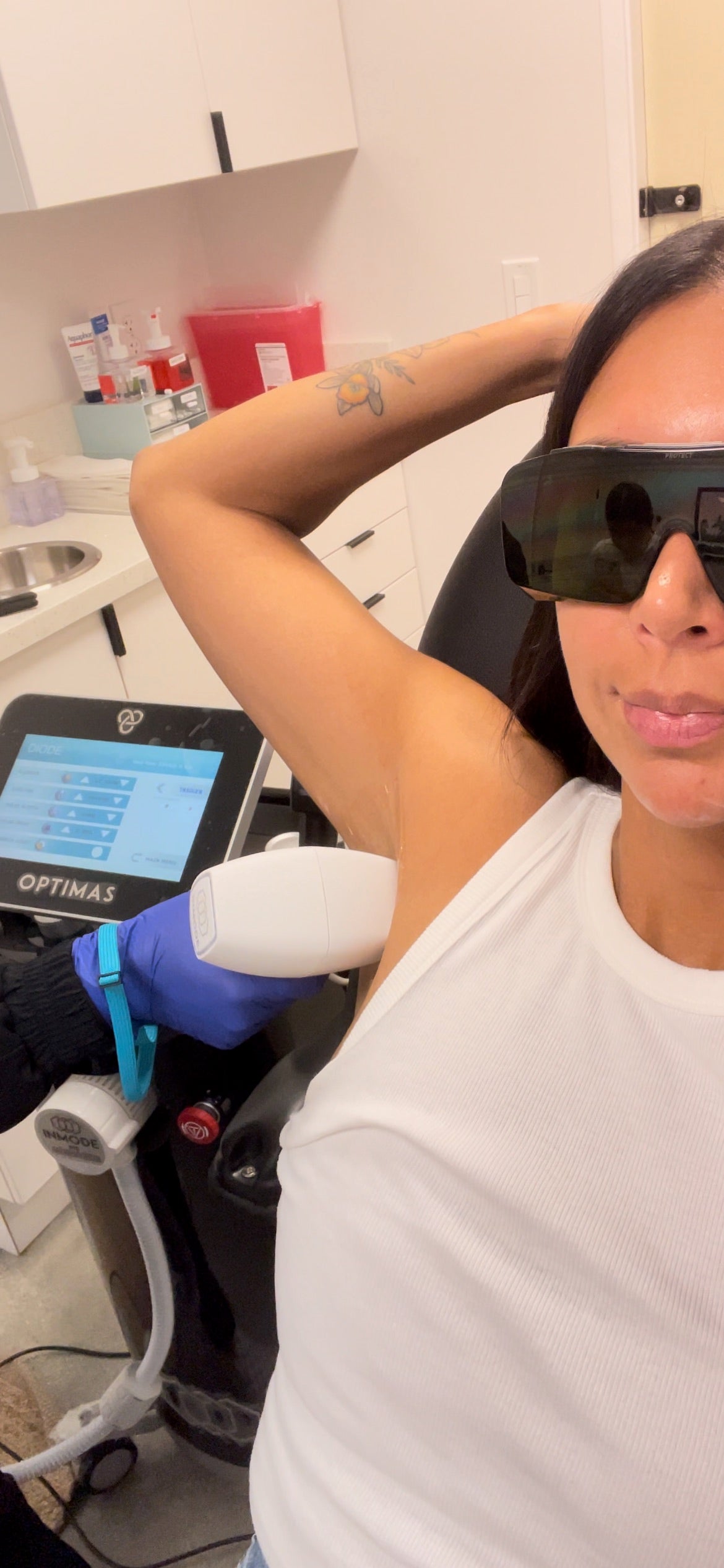 3. The Procedure: Right before the procedure, your provider will apply ultrasound gel to the treatment areas. This allows the laser to easily glide across your skin. Next, you’ll get to put on protective eyewear to shield your eyes from the laser. Your provider will glide the handheld device across your skin, emitting controlled pulses of energy which are absorbed by the melanin (pigment) in the hair follicles, inhibiting future hair growth.