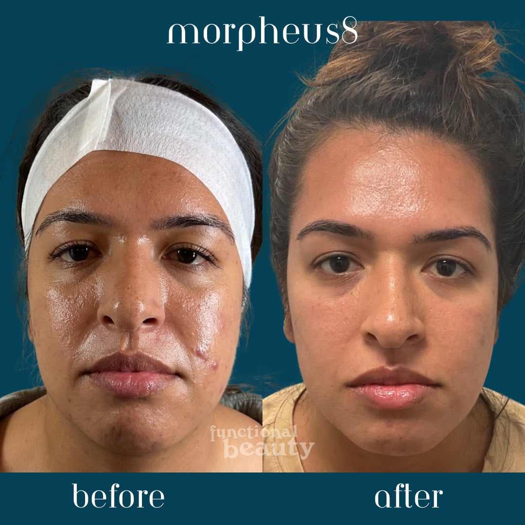 At Functional Beauty, every Morpheus8 treatment is paired with Exosomes to take your results to the next level. The exosomes prep the skin, accelerating collagen production, reducing inflammation, and promoting a more youthful, radiant complexion. Experience faster healing, improved texture, and vibrant skin with our innovative Morpheus8 treatment combined with exosomes pre and post treatment.